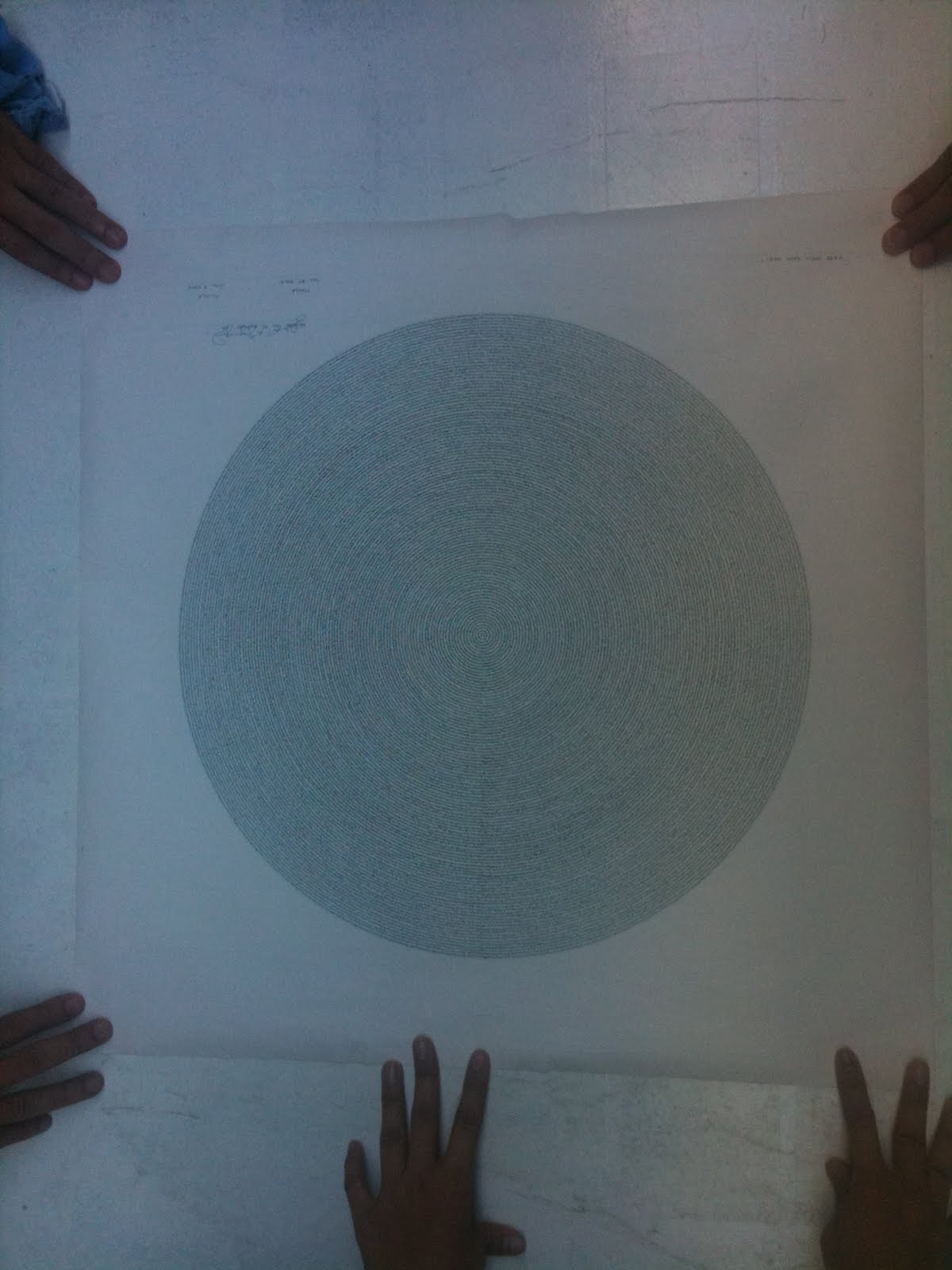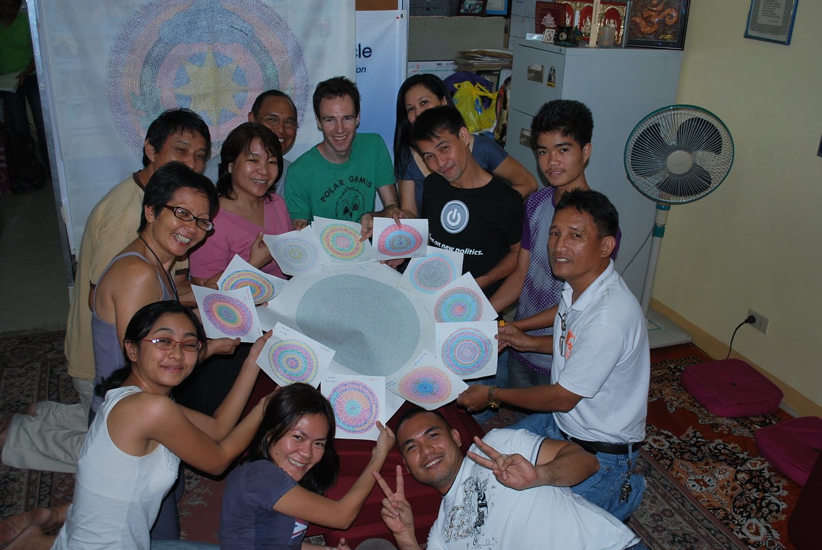 That is where Orlan comes in. Orlan, one of the workshop leaders had previously created a very large written mandala. In fact, the intricate creation had take him six months of steady writing to complete. It was done with one fine black pen. Written over and over was the affirmation: “I am a divine being”.