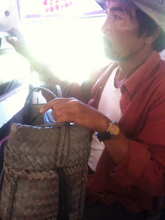 Amazing farmer’s back-pack woven entirely from recycled plastic packing straps. This farmer on his way to work near Banue Philippines let me take some photos of his amazing bag. He explained he had brought his lunch in it to the field for the last 10 years! It’s a mimic of a traditional rattan backpack of the Igorot people.