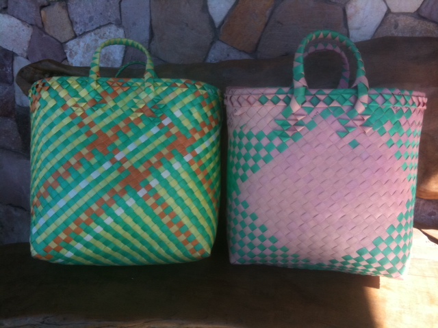 Beautiful Market Bags made from recycled plastic packing straps in Baguio, Philippines