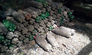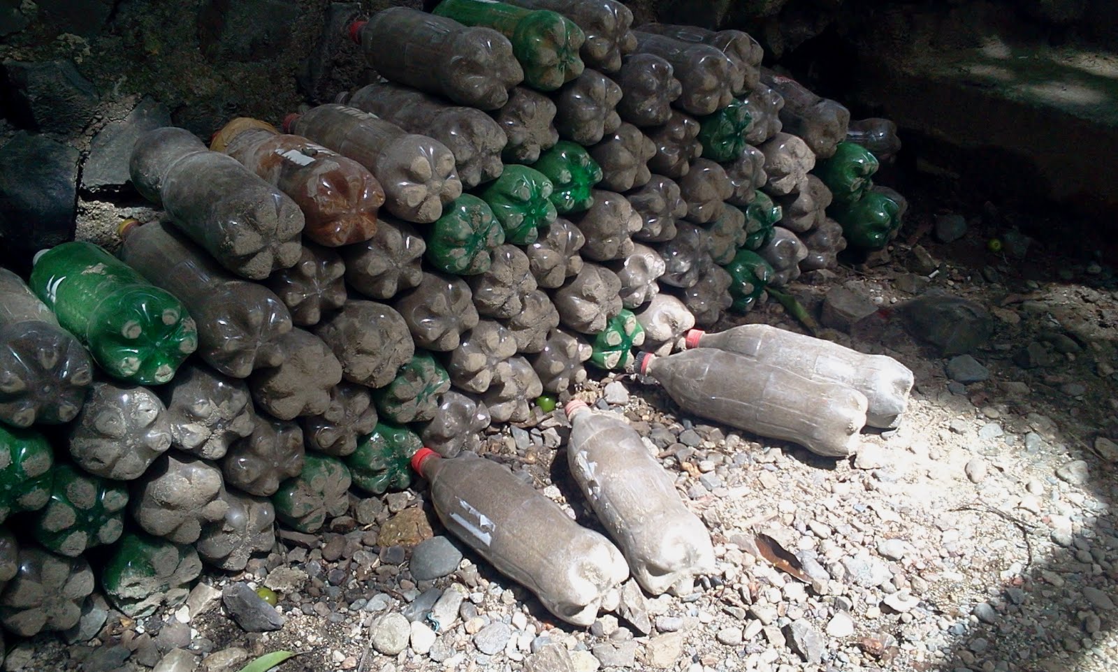 Bottles to Bricks: Today we were packing river sand, river trash into 1.5L bottles to make great bricks! These will be used to build the villages Youth Inspiration Centre which is being made from recycled materials..