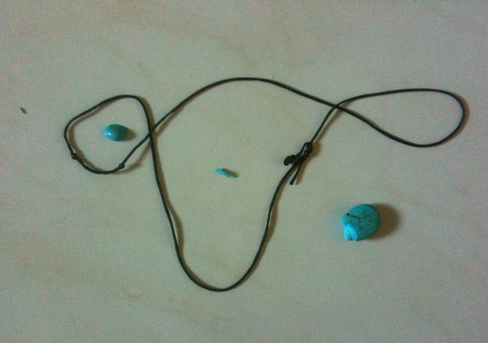 Meine besondes Kollier geshank heb niederstreken und gehen kaput gestern. Eine große schade. Ich bin traulich. Abber met destruktion auch kommen Kreatzion. Ich heb gemacht Kunst Met die Stuck auf die kaput turquoise.