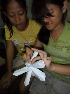 Last night Sarah and I gathered with the Muslim/Christian Youth Group in Tala to make the lotus origami prayers. Today will be aranging them in a ceremony in front of the Japanese  embassy in Manila.  It bodes to be beautiful.
