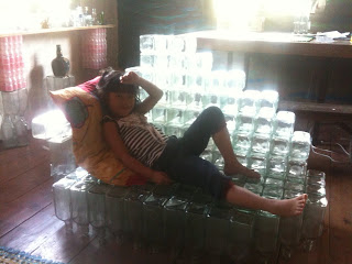 Love Seat Recliner made entirely from gin bottles is put to use by a little visitor to the Trashure Studio by Russell Maier | Mar 28, 2012 | Uncategorized