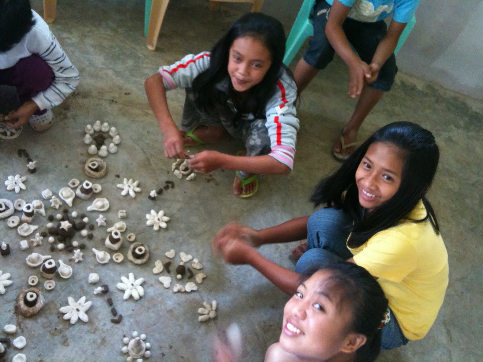 In the meanwhile we are introducing mandalas to the community! The other day we filled up the Madongo community centre with about 20 children ages 5-12. I think they understood some of my English, but just in case Dom-an was there to translate to the local Kankana-ey dialect. It is a very humble Igorot community of people who live off the land — there were no pastels, let alone paper! So Dom-an and I improvised with home made playdough and Terra-cotta clay (thanks for the inspiration Sarah!)