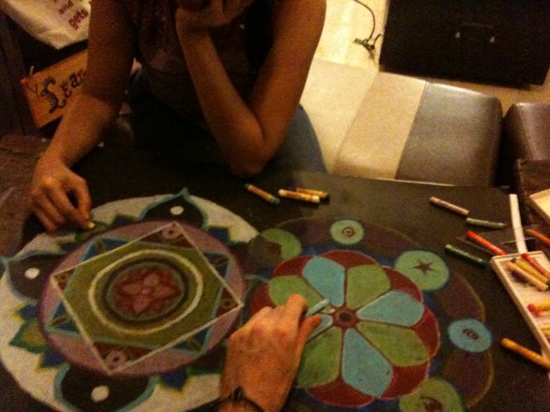 Sarah and I have been synchronistically connected even before Abby and I had tickets to the Philipines. Sarah makes mandalas with folks, just like me! She works with children and spiritual themes, just like me! We had been talking excitedly over facebook about mandalas.