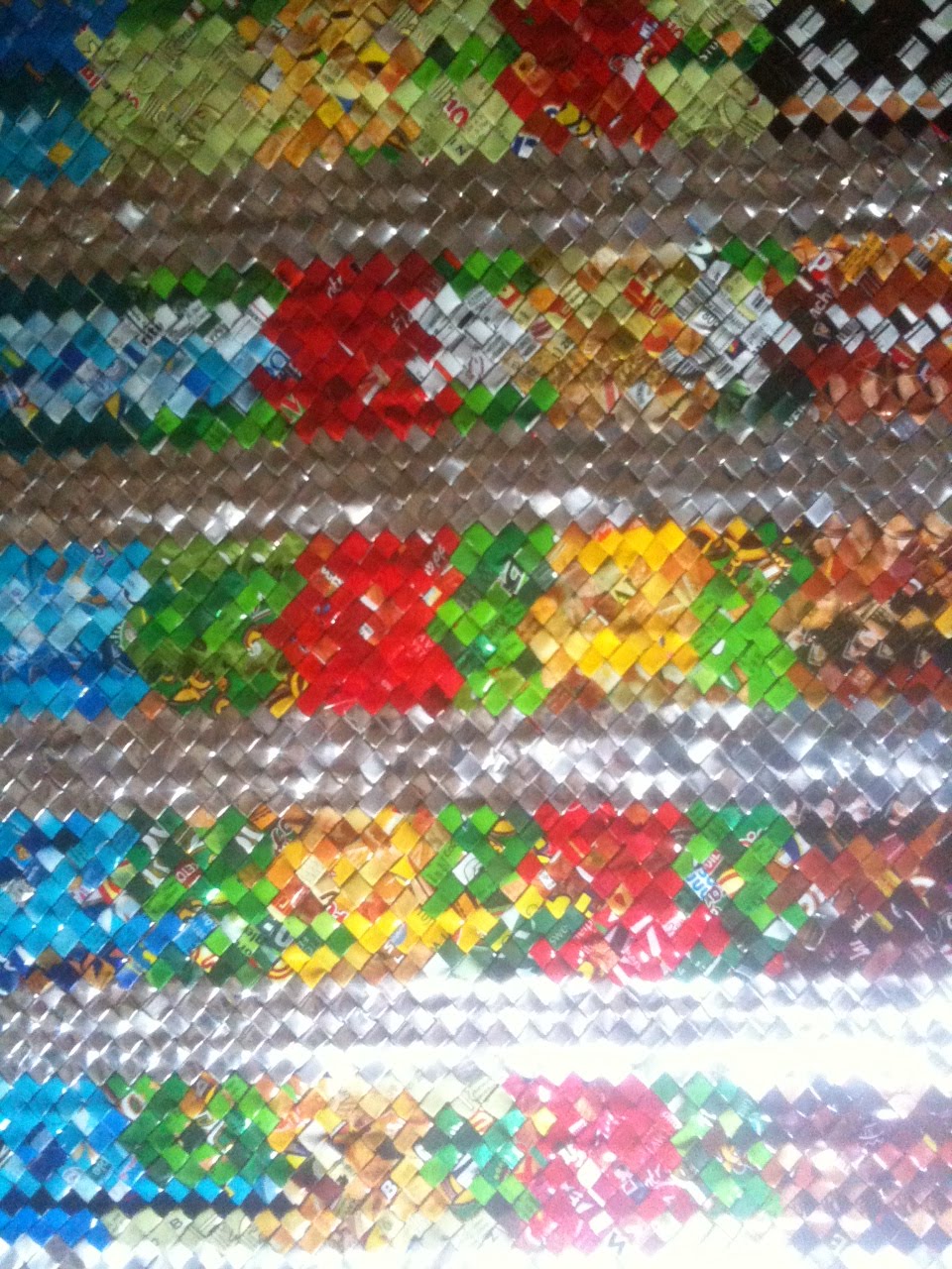 But that’s ok. Because their weaving is in itself immensely functional. Not only do they create bags and purses and belts and mats with it, but it uses up trash. And when I pay for the bags, paintings or whatnot, it gives financial value to the wrappers, chips packages and such that would otherwise simply have been burned or flushed into the environment to eventually release their toxicity. When waste has even a little bit of financial value, community recycling systems spring up organically to get the trash to the weavers. It’s a beautiful thing to behold.