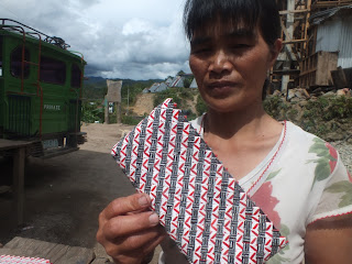 My friend just got back from delivering books to our library project in Guina’ang. He was able to take some photos of Eliza’s latest clutch bags (5) and cell phone cases (2). They are some of the best I have yet seen!