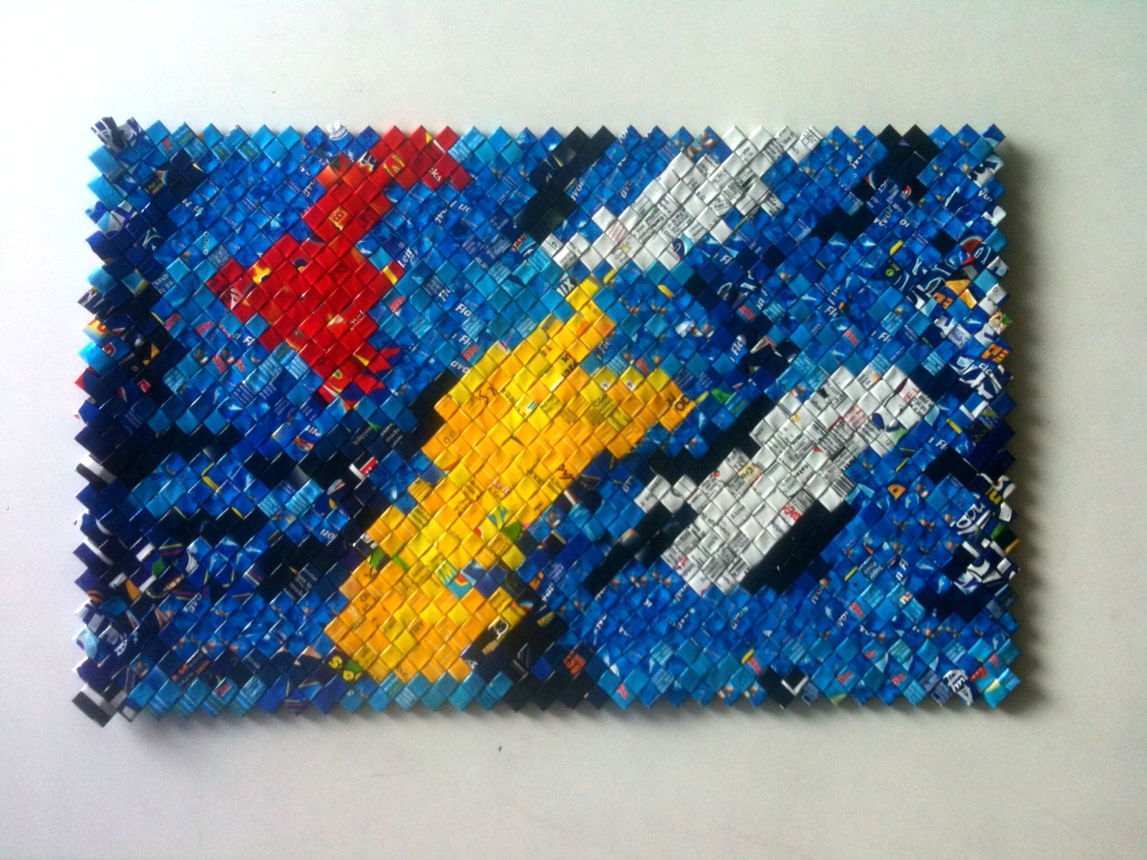 We’re working hard with our teams of village weavers we’re steadily developing large fine art canvases out of the recycled wrappers and sachets. These ones were recently exhibited at the Baguio City Museum